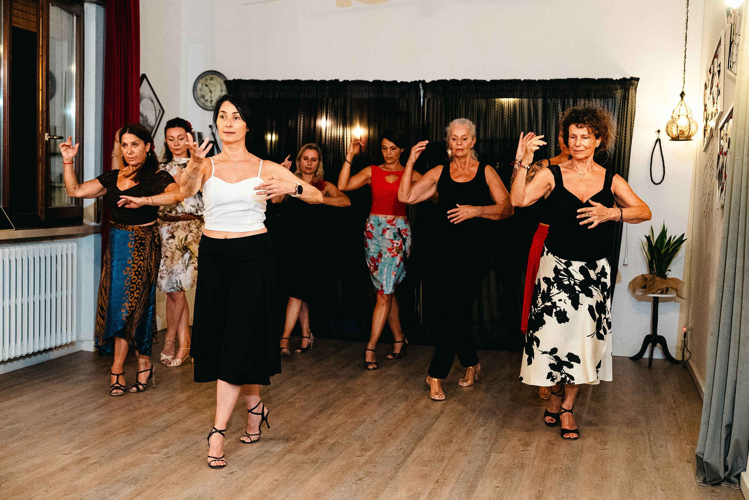 La passione per la musica e per la sua intima connessione con l’espressività corporea mi ha portata, oltre 20 anni fa, ad avvicinarmi al tango argentino (presso il Clandestino Tango Club) e alla danza orientale (presso l’Accademia di danza Margarita).